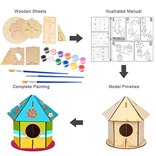【Kit di artigianato per bambini】: I kit di artigianato per bambini contengono 3 casette per uccelli non verniciate con 3 corde, 12 pezzi di vernice in 12 colori e 3 pennelli, una quantità sufficiente che combina diversi strumenti soddisfa facilmente le tue esigenze fai-da-te;