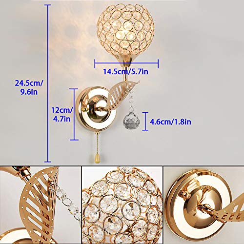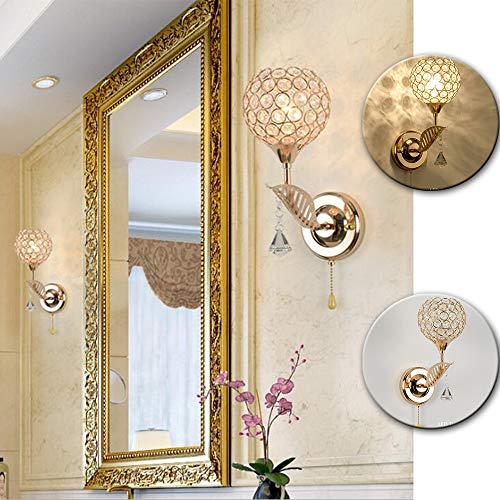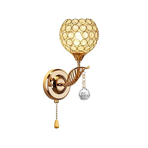WeFoonLo Moderna lampada da parete in cristallo cromato finitura lampada da parete lampada da parete con interruttore a cordoncino, attacco E14 (oro)