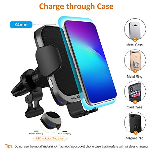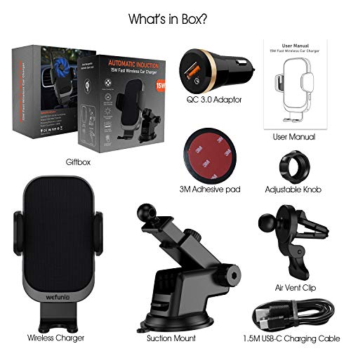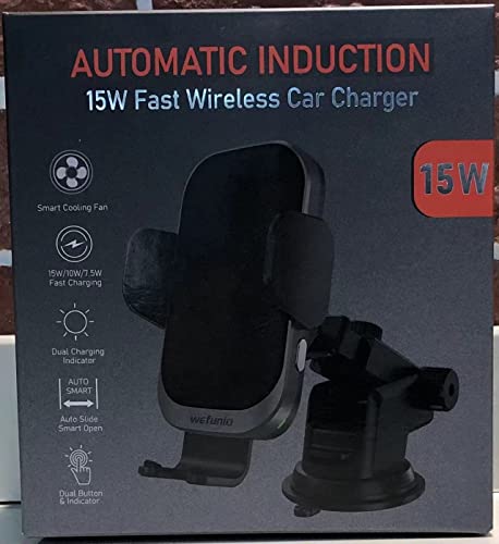 Wefunix Caricabatterie Wireless Auto 15W Sensore Automatico con Ventilatore Caricatore Wireless Ricarica Rapida compatibile con iPhone 14 11 12 13 XS XR X SE Samsung Galaxy S23 S22 S21 S20 Note 20/10
