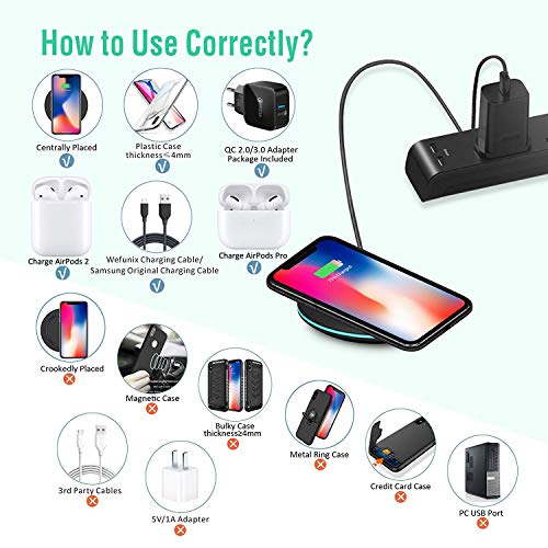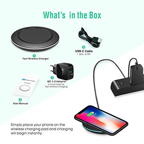 【Il Design più Pratico e la Configurazione Comoda】Il design high-end di ABS e silicone offre la migliore antiscivolo su entrambi i lati, con un adattatore QC3.0 e un cavo di ricarica USB C da 1.5m incluso, è possibile caricare facilmente il telefono ovunque. ♥Case Friendly♥:Caricare direttamente in cover spessi(≤5mm), non è necessario rimuovere prima di caricare(≤3mm per Samsung). Gli accessori in metallo/magnete o le carte di credito interferiranno con la ricarica, rimu