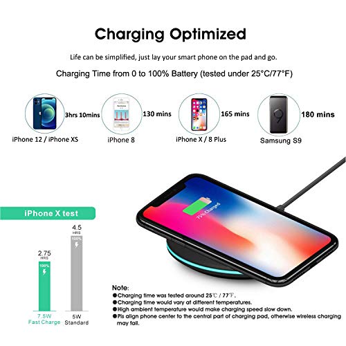 【Ricarica Wireless da 7,5W/10W/15W】Offre una velocità 2 volte superiore a quella del caricabatterie wireless 5W. Offre ricarica wireless rapida da 7,5W compatibile con iPhone 14/14 Pro/13/13 Pro/12/12 Pro/11/11 Pro/11 Pro Max/XS/XS Max/XR/X/SE,10W per Galaxy Z Flip5/4/3/Fold5/4/3/S23/S22/S21/S20/S10/S10+/S10E/S9/S9+/S8/S7/Note 10/9/8,15W per LG G8. ※La potenza in uscita passerà alla modalità di carica 5W quando la temperatura ambiente è troppo alta e la velocità di ricarica sarà molto più bassa.