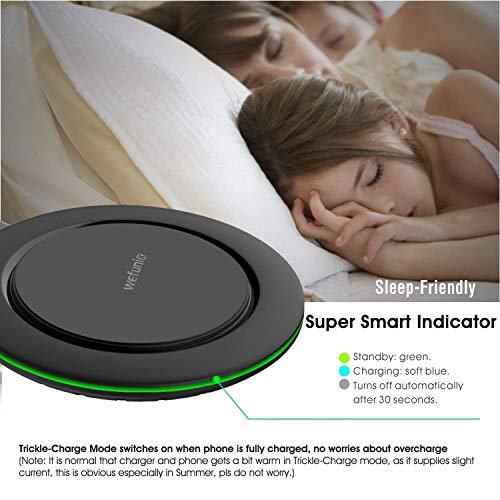 【Protezioni Multiple Forniscono una Carica Sicura】Certificato da Qi, CE, FCC e ROHS, il suo IC integrato offre protezioni da alta temperatura, sovraccarico, sovracorrente, sovratensione, cortocircuito e FOD (Foreign-Object-Detection). Quando è completamente carica, la modalità di carica del trickle si accende automaticamente, non c'è bisogno di preoccuparsi di sovraccarico anche se continua a caricarsi durante la notte.