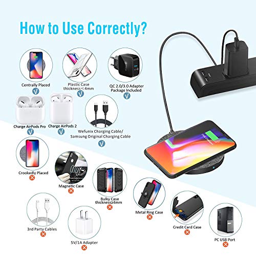 【Il Design più Pratico e la Configurazione Comoda】Il design di alta gamma con corpo in alluminio è perfetto per la dissipazione del calore, con adattatore QC3.0 e cavo di ricarica USB C da 150cm incluso, puoi ricaricare facilmente il tuo telefono ovunque.♥Case Friendly♥:Caricare direttamente in cover spessi(≤5mm), non è necessario rimuovere prima di caricare(≤3mm per Samsung). Gli accessori in metallo/magnete o le carte di credito interferiranno con la ricarica, rimuovili prima di caricarli.