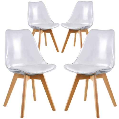 WeHome - sedia design moderna sala da pranzo o salotto disponibile in diversi colori con gambe effetto legno e seduta trasparente con cuscino in ecopelle (Bianco Trasparente)