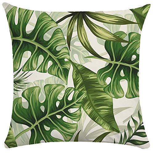 WEIANG - Federa per cuscino con motivo di foglie verdi tropicali su entrambi i lati, misura grande, 50 x 50 cm (07)