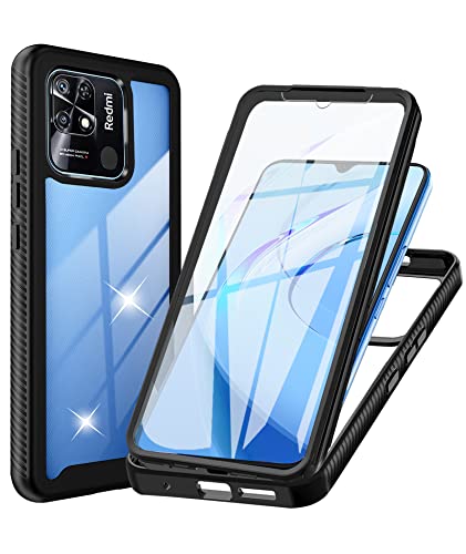 WeiCase Cover per Xiaomi Redmi 10C, Custodia Antiurto con Protezione dello Schermo Integrata, 360° Sottile Cover Transparente Silicone Custodia per Redmi 10C, Nero