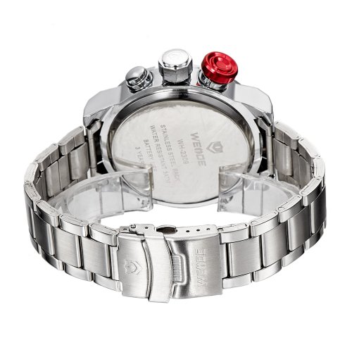 Weide WH2309-White - Orologio da polso da uomo, cinturino in acciaio inox colore argento