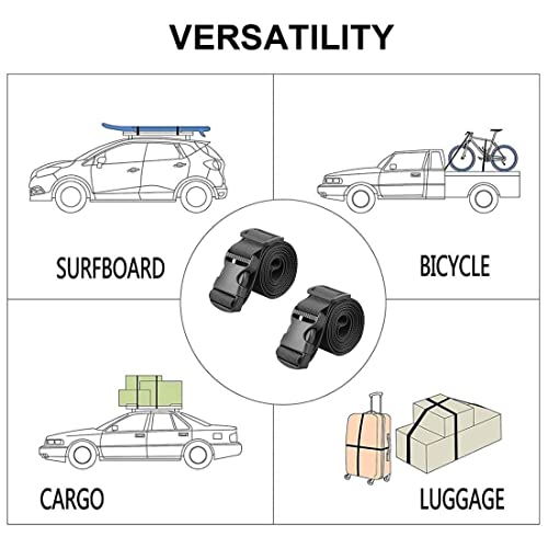 【Versatile】:questa cinghia di fissaggio si stringe saldamente. Le cinghie del bagaglio aderiscono bene e la fibbia aggiornata è abbastanza forte da contenere qualsiasi cosa sul portapacchi dell'auto, sul furgone, sul rimorchio, ecc. Per una varietà di scopi domestici, come portabiciclette, canoa, tavola da surf, bagagliaio dell'auto, carico, bagagli.