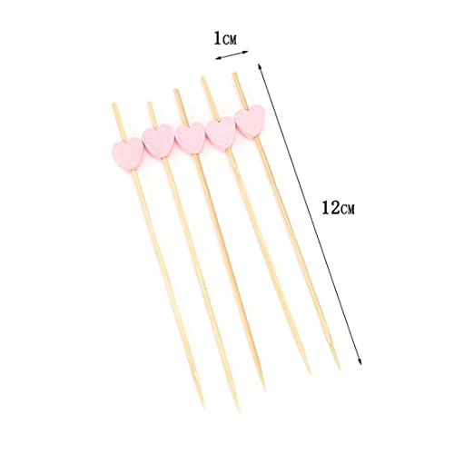 WEIESCIE 100 Pezzi Stuzzicadenti Cocktail Bastoncini, Stuzzicadenti Cocktail, Rosso Bastoncini Legno con Cuori 12 cm Lunghi, per Frutta, Feste, Dessert, Insalata, Cocktail per Decorazioni (Cuori Rosa)