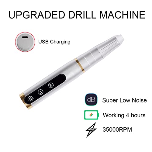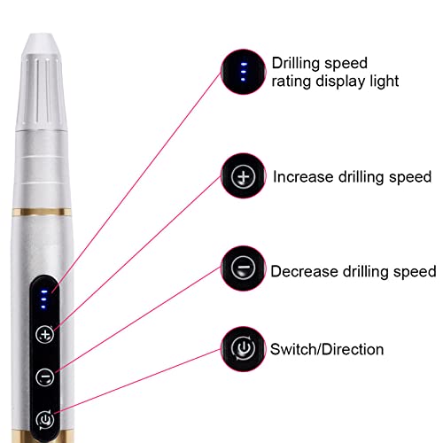 【BASSO RUMORE E BASSE VIBRAZIONI】 Questo trapano elettrico senza fili è costituito da un motore potente ma silenzioso, il rumore è inferiore a 60 decibel. Il design cordless della macchina per manicure in lega di alluminio di alta qualità è più stabile, non necessita di scatola di controllo. È la scelta perfetta per i principianti.