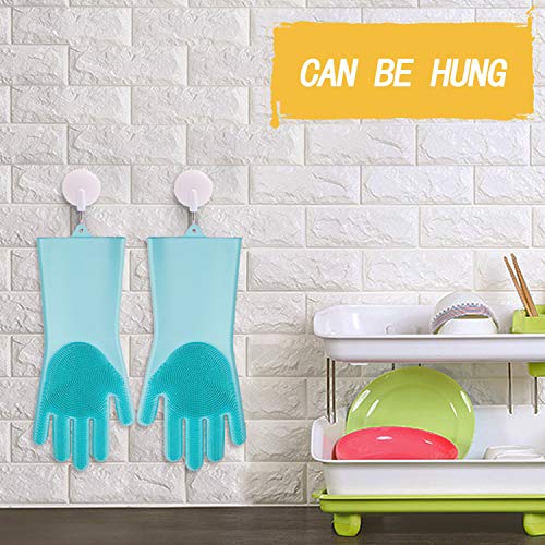 Weikin Guanti in Silicone Magico Guanti per lavapiatti con Lavaggio Scrubber Spazzola per la Pulizia Riutilizzabile Resistente al Calore per Lavare i Piatti, Pulire la Cucina, Verde ... (Verde)