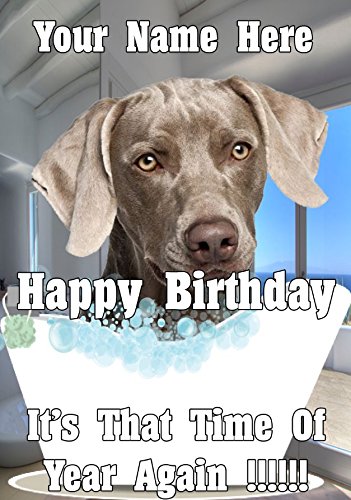 Weimaraner Dog BD68 bagnetto cute Happy Birthday A5 auguri personalizzato Posted by US Gifts For All 2016 from Derbyshire UK