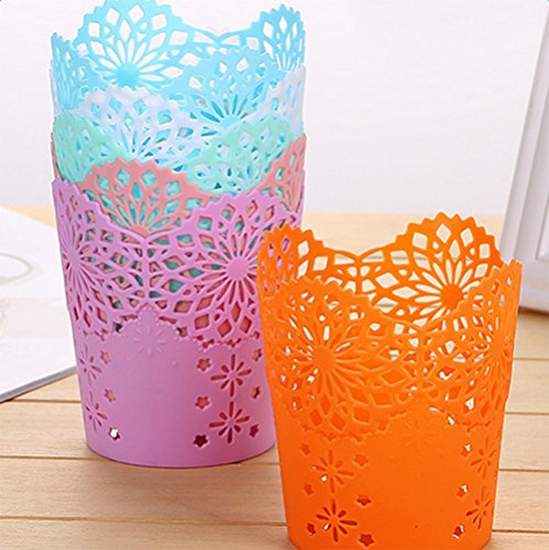 WeiMay, 1 portamatite in pizzo, cavo, vaso da pianta per penne, trucco, pennelli, organizer da scrivania, bianco