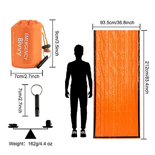 Weinsamkeit 2 Coperte per Dormire di Emergenza con 2 Fischietti di Sopravvivenza, Sacco Bivy Leggero e Impermeabile per la Sopravvivenza,Sacco Termico Portatile da Bivacco per Campeggio, Escursionismo