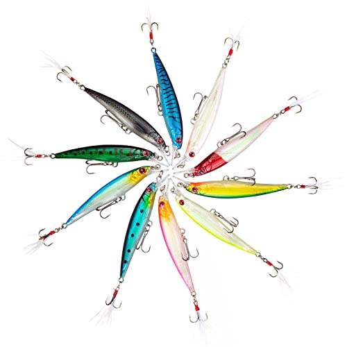 Weinsamkeit Esca da Pesca Spinning, 10 Pezzi 3D Artificiali Finti Mare, Fishing Lure per Trota Spigola Luccio, Accessori Kit per Acqua Dolce e Salata