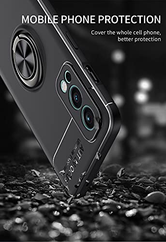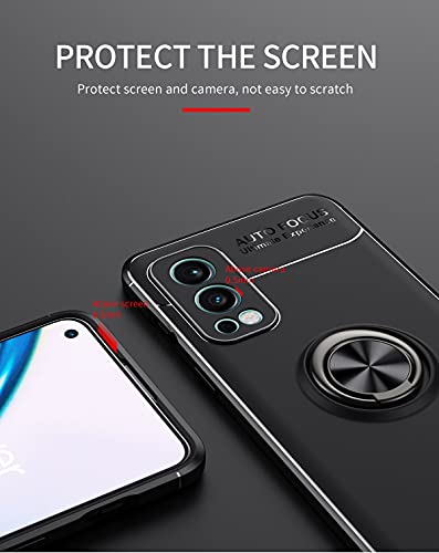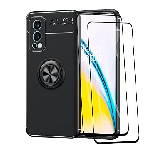 WEIOU Cover per OnePlus Nord 2 5G + 2 Vetro Temperato, TPU Silicone Antiurto Custodia, Protettiva Case con 360° Girevole Anello, Sottile Morbid Shell, Nero+Nero