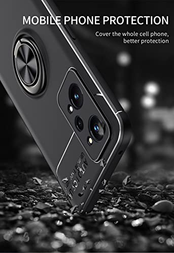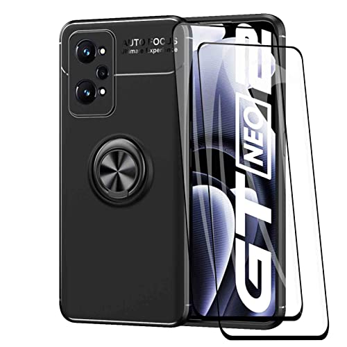 WEIOU Cover per Realme GT 2(GT2) / GT Neo 2(GT Neo2) + 2 Vetro Temperato, TPU Silicone Antiurto Custodia, Protettiva Case con 360° Girevole Anello, Sottile Morbid Shell, Nero+Nero