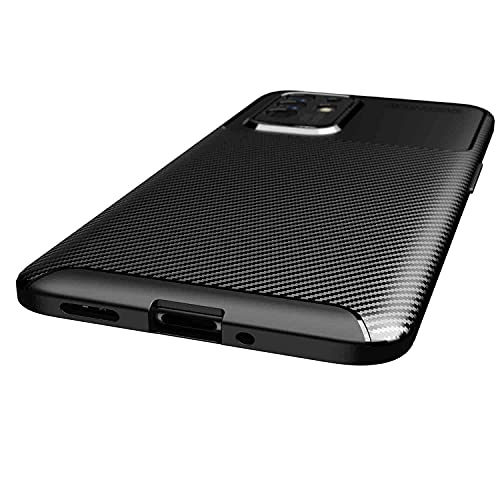 WEIOU Fibra di Carbonio Cover per Oppo A94 5G (Reno 5Z) Case + 2 Vetro Temperato, Custodia in Morbida Silicone TPU Anti-Graffio Antiurto Protettiva Shell Bumper. Nero