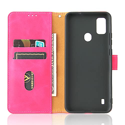 WEIOU Leather Folio Cover per ZTE Blade A51, Custodia in Pelle PU Magnetica Libro Flip Portafoglio con [Funzione Stand]. Rosso