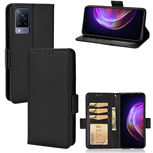 WEIOU Leather Folio Cover per Vivo V21 5G Case, Custodia in Pelle PU Magnetica Libro Flip Portafoglio Bumper con [Funzione Stand]. Nero