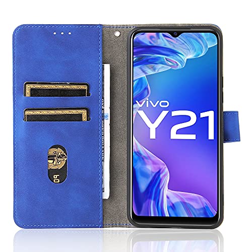 WEIOU Leather Folio Cover per Vivo Y21 / Y21s / Y33s, Custodia in Pelle PU Magnetica Libro Flip Portafoglio con [Funzione Stand]. Blu