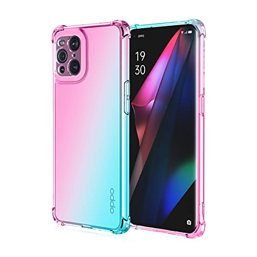 WEIOU TPU Sfumato Cover per Oppo Find X3 PRO Case, Custodia in Morbida Silicone TPU Anti-Graffio Antiurto Protettiva Shell Bumper (Rosa Verde)