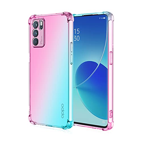 WEIOU TPU Sfumato Cover per Oppo Reno 6 5G (Reno6 5G) Case, Custodia in Morbida Silicone TPU Anti-Graffio Antiurto Protettiva Shell Bumper (Rosa Verde)