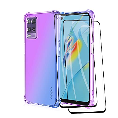 WEIOU TPU Sfumato Cover per Realme 8 5G / Realme Narzo 30 5G Case + 2 Vetro Temperato, Custodia in Morbida Silicone TPU Anti-Graffio Antiurto Protettiva Shell Bumper (Viola Blu)