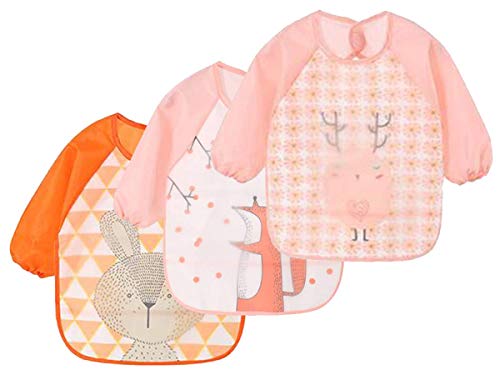 WeiterVor Set di 3 Impermeabile Bavaglino a maniche lunghe 1- 3 anni (Set di 3-Ragazza)
