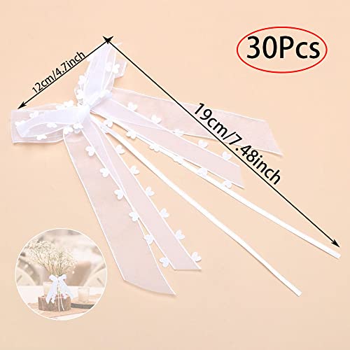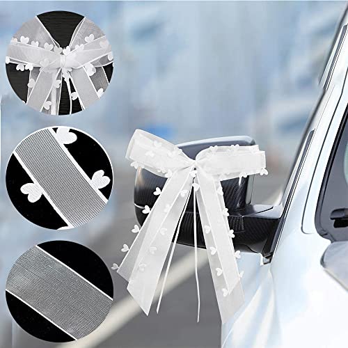 WEIWUXIAN Fiocchi Bianchi, 30 Pezzi Fiocchi Auto Matrimonio, Matrimonio Fiocchi Auto, Fiocco in Raso Bianco, Matrimonio Fiocchi Auto con Cuori e Fiocchi,per la Decorazione di Auto, Matrimoni