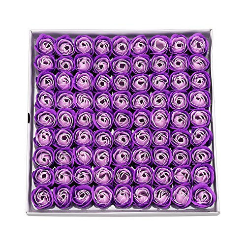 Weiye Sapone a forma di rosa, sapone profumato ai fiori, sapone con olio essenziale della pianta, regalo per anniversario, compleanno, matrimonio, San Valentino, 81 pezzi Purple
