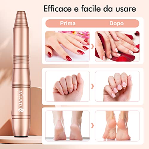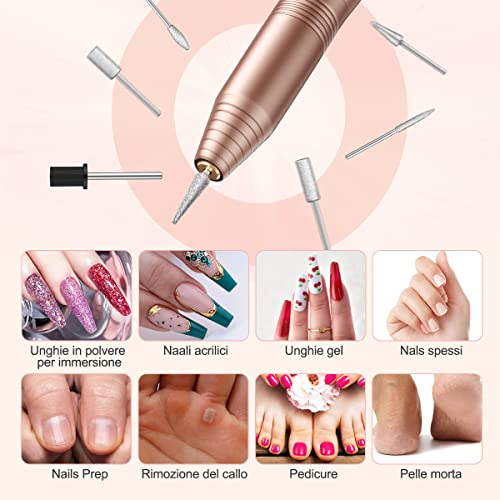 WEIYI Fresa per Unghie, Lima per Unghie Elettrica,Trapani Elettrico per Manicure e Pedicure USB Professionali da 20000 RMP per Unghie Acriliche, Natale Strumenti per Lucidare le Unghie (D'oro)