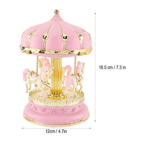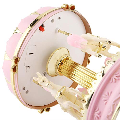 Weiyiroty Merry-Go-Round Carillon a Giostra, Romantico Carillon per Bambini, 3 Cavalli Gira a Cavallo Artigianato Musicale per Ornamento del Desktop Regalo di Anniversario Regalo di Compleanno(Rosa)