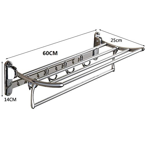 Design: il rack multifunzione è progettato con un design molto intuitivo. Quando non viene utilizzato, può essere ripiegato contro il muro senza occupare spazio. E progettato 4 ganci per migliorare la capacità di archiviazione