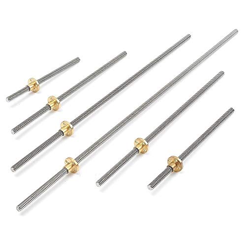 WEJUANR T6 Piombo Vite 1 Millimetro Piazzola con Dado in Ottone 100/150 / 200/250/300/400 Millimetri di Piombo Vite Utilizzata in 3D Printer (Size: 200mm)