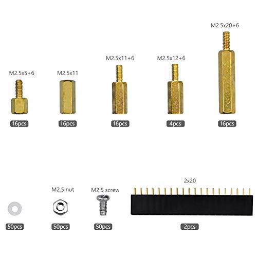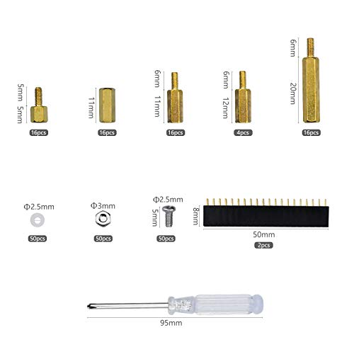 WEKON 220 distanziatori in ottone M2.5 a colonna esagonale con scatola per Raspberry Pi, con rondella in acrilico, cacciavite con spina rialzata