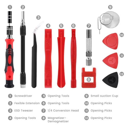 【Piccola e Robusta】Cacciaviti precisione La maniglia adotta un comodo design telescopico, comodo e veloce da usare. La borsa degli attrezzi compatta è piccola e portatile, facile da trasportare. Il robusto guscio è abbinato a un lucchetto che rimane chiuso per garantire conservazione e trasporto sicuri.Sulla scatola Il modello di marcatura lo rende facile da trovare ogni volta che lo usi.