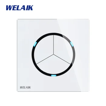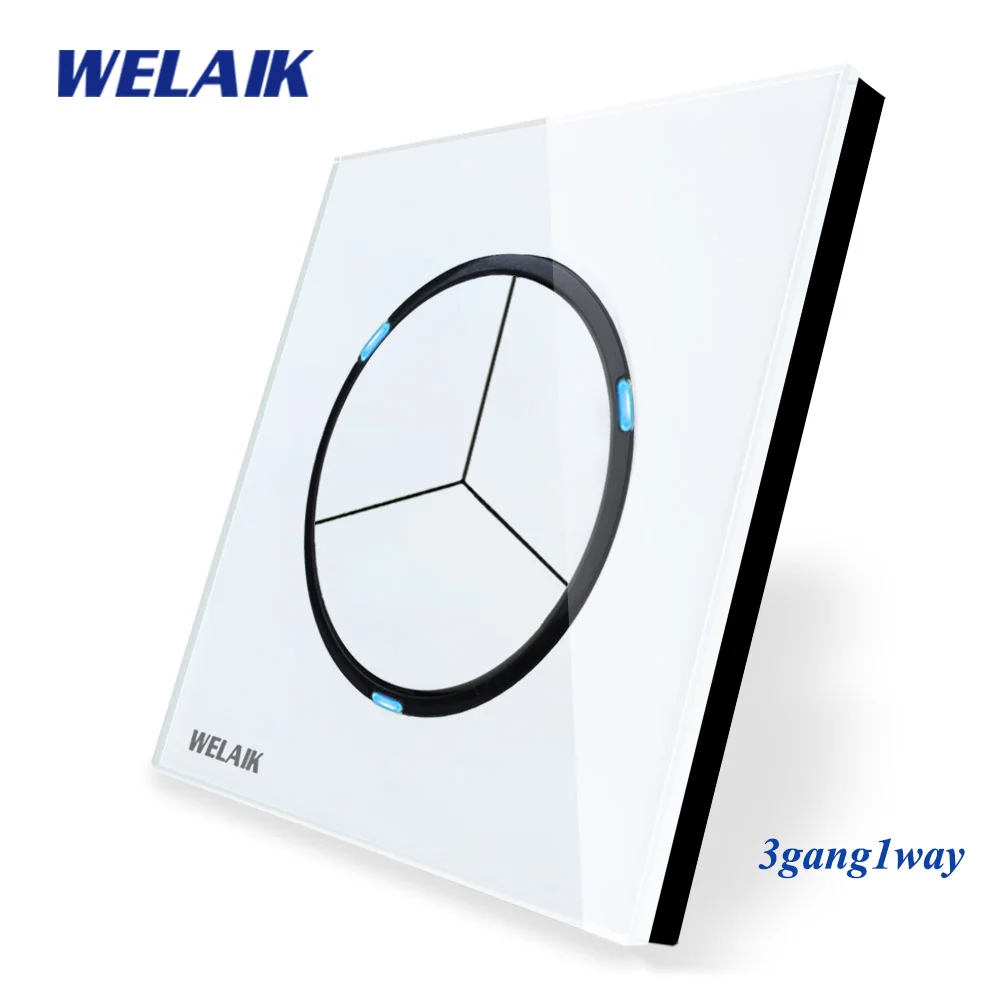 WELAIK UK standard-Crystal Glass-Panel Push-Button-Switch Wall-Light-Switch AC110-250V 3Gang-1Way B1731W