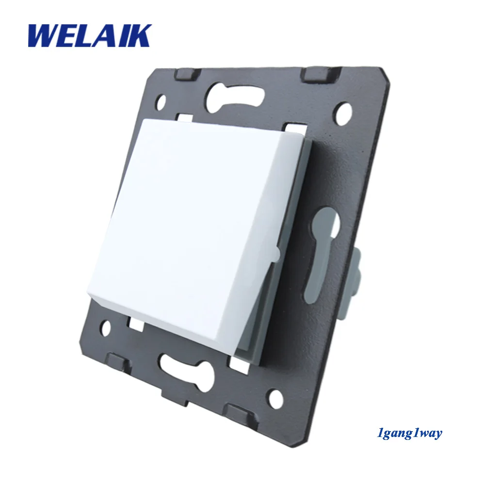 WELAIK EU Wall-Switch-DIY Parts-Push-Button 1Gang-1Way Wall-Light-Switch Parts Crystal-Glass-Panel AC110-250V A711W/B