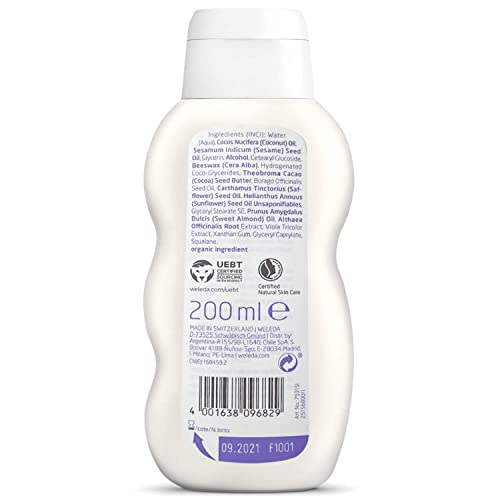 Weleda Baby Derma Crema Fluida Malva Bianca, trattamento corpo non profumato dall'azione lenitiva per pelli molto sensibili e tendenti a dermatite atopica (1X200 ml)