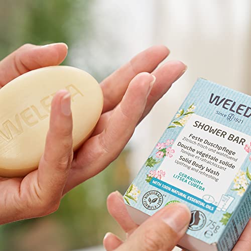 Weleda Bagno Doccia Solido Geranio + Litsea Cubeba, formula biodegradabile e vegana di origine 100% naturale, raffinata miscela floreale con geranio e ltsea cubeba (1x 75g)