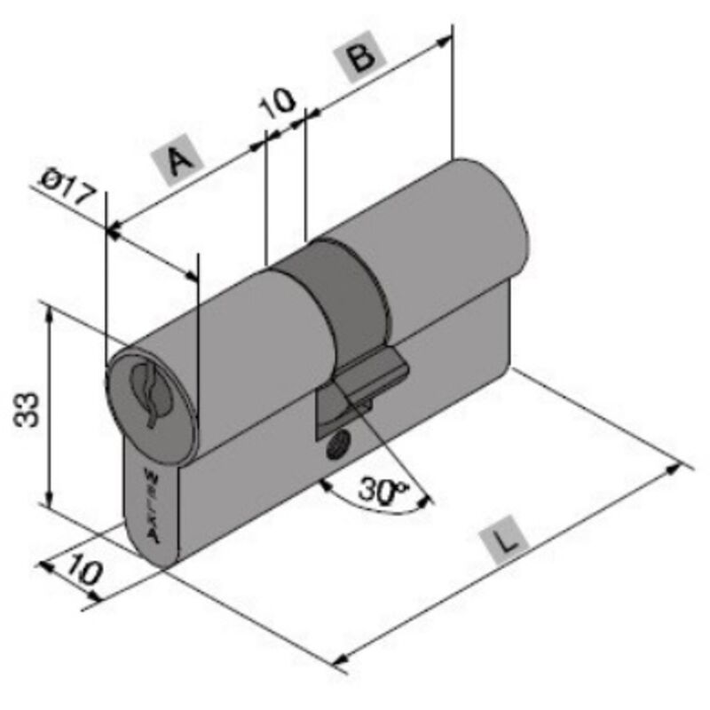 Corpo in ottone con 3 chiavi in ottone nichelato a 4 spine grandi - leva din sporgente 30