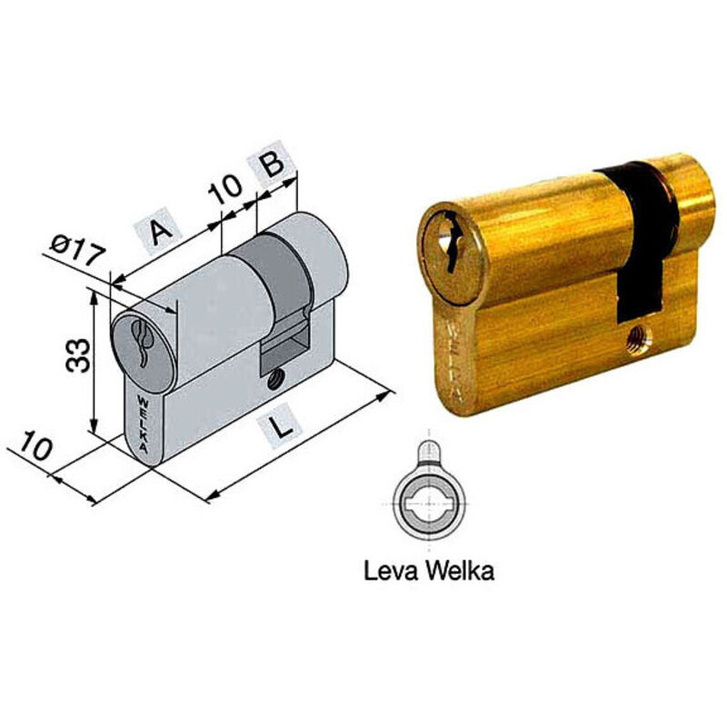 Codice: LF-59338 Marca: WELKA. Cilindro infilare ottone Leva Welka centrale 3 chiavi Adatto serratura Welka 085 cod.81996