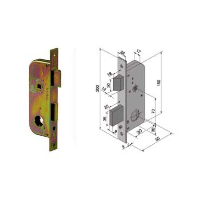 Mm.30 con catenaccio mm.25 (06730000) scatola e frontale in acciaio tropicalizzato, catenaccio in acciaio 2 mandate con scrocco reversibile separato e quadro maniglia - funzionante con cilindro tondo ø mm.22 non compreso Categoria merceologica: Serrature, chiusure di sicurezza e accessori - Sicurezza - Serrature per cancelli da infilare