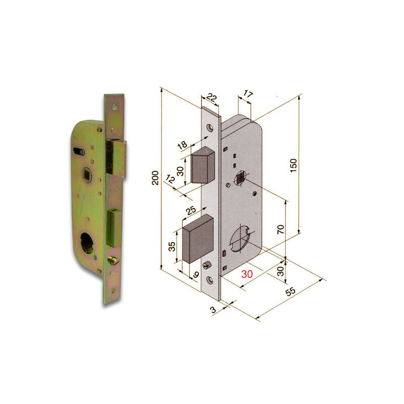 Scatola e frontale in acciaio tropicalizzato, catenaccio in acciaio 2 mandate con scrocco reversibile separato e quadro maniglia - funzionante con cilindro tondo ø mm.22 non compreso