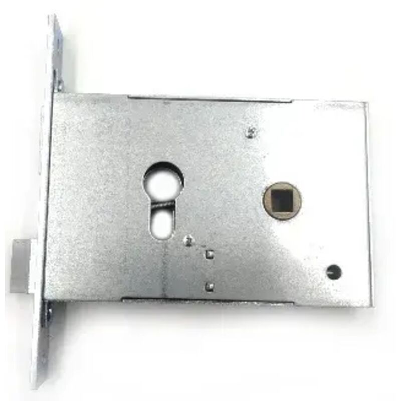 Serratura montanti alluminio infilare Acciaio zincato bianco - Catenaccio 2 mandate e scrocco reversibile - Quadro mm 8 Scatola mm 135x87 - Frontale mm 22x155 Entrata mm 50 - Cilindro serie 700 non incluso