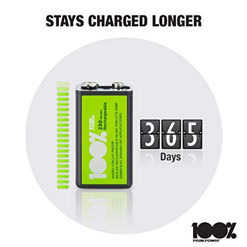 Well Accu-Tech 9Vh/PP Rechargeable NiMH 9 V Battery 200 mAh, Peak power da 20 BL1 trasparente
