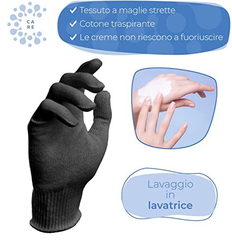 Well B4 Care Guanti di cotone, guanto in stoffa, morbidi guanti in maglia con polsino elastico, 1 paio, nero, taglia S
