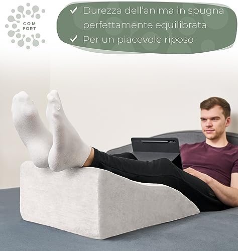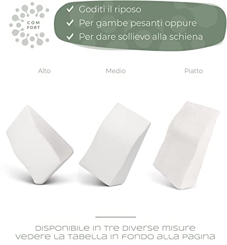 ✅ - si adatta alla naturale forma delle gambe, il cuscino per sollevare le gambe, é ideale per compensare un dorso cavo o per sostenere la circolazione sanguigna.