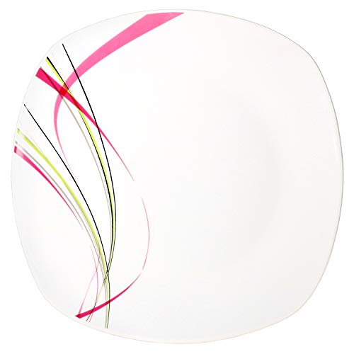 Van Well - Servizio da tavola combinato Fashion, 30 pezzi, per 6 persone, in porcellana, a forma leggermente quadrata, con motivo a linee, colore: Bianco